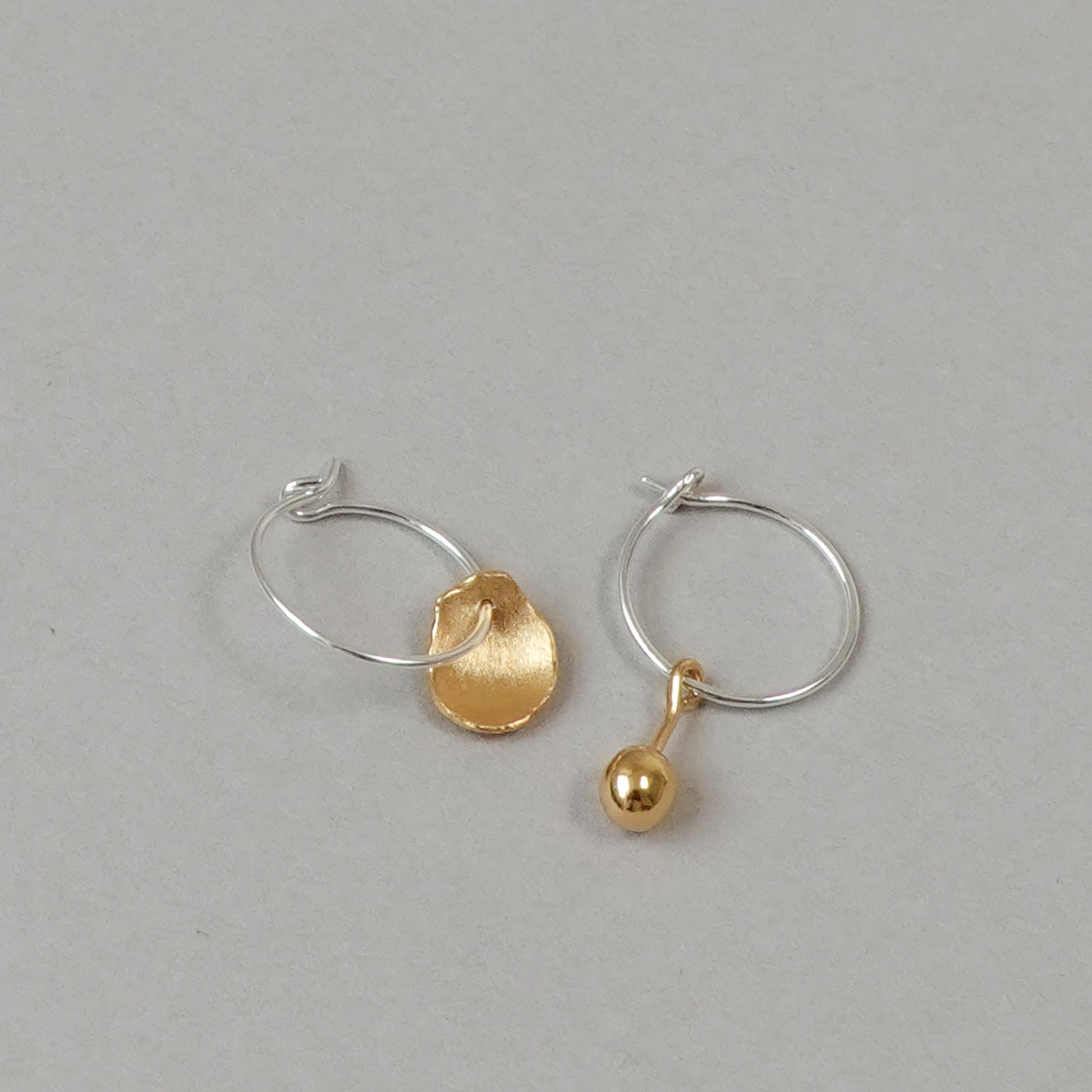 Mis-matched Pair of Seed & Pod Fragment Hoop Earrings
